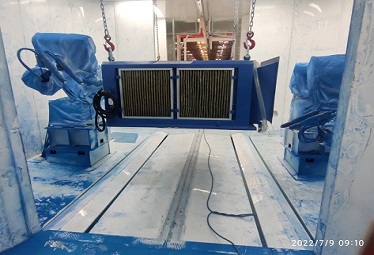 | 靜電噴粉房室體兩側(cè)設(shè)置人工補(bǔ)噴工位,工位大小及位置設(shè)置合理,根據(jù)機(jī)器人仿真噴涂軌跡,保證機(jī)器人噴涂不到的位置人工噴涂均能覆蓋,設(shè)計(jì)時(shí)要充分考慮鏈條速度與人工補(bǔ)噴速度的合理性,保證該工位設(shè)計(jì)滿足線體速度需求。同時(shí)該工位高度設(shè)置要合理,要覆蓋所有工件的人工補(bǔ)噴,并便于人工操作。 |